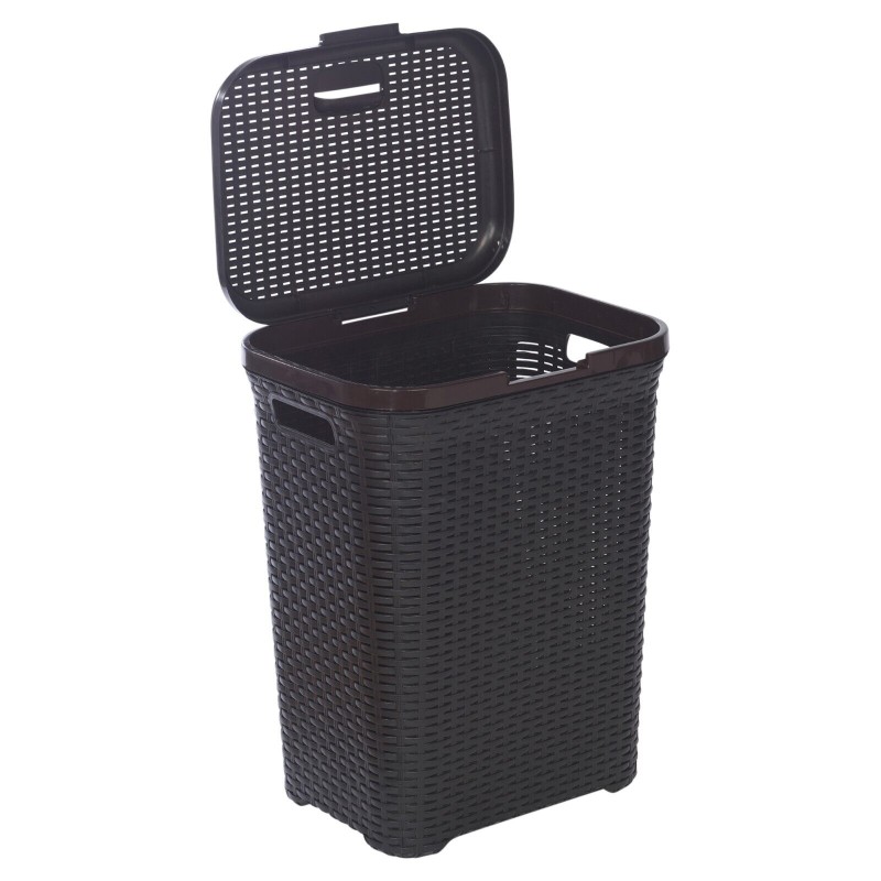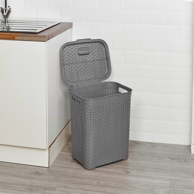 45/55L Plastic Rattan Dirty Laundry Clothes Washing Bin Basket Storage Organiser