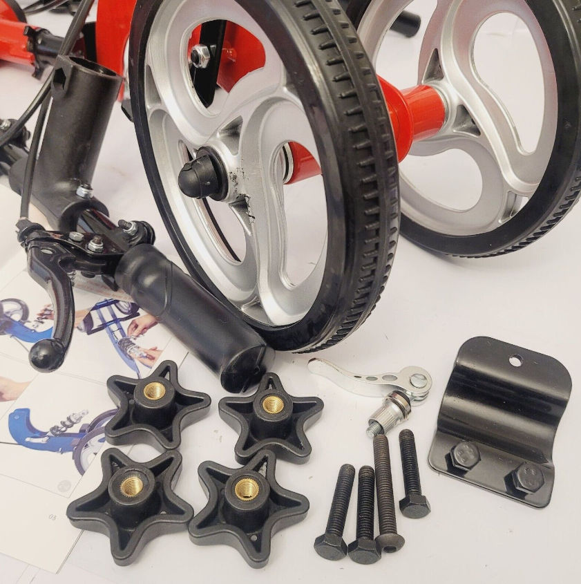 - Adjustable handlebar/knee pad height with soft foam knee cushion for comfort.