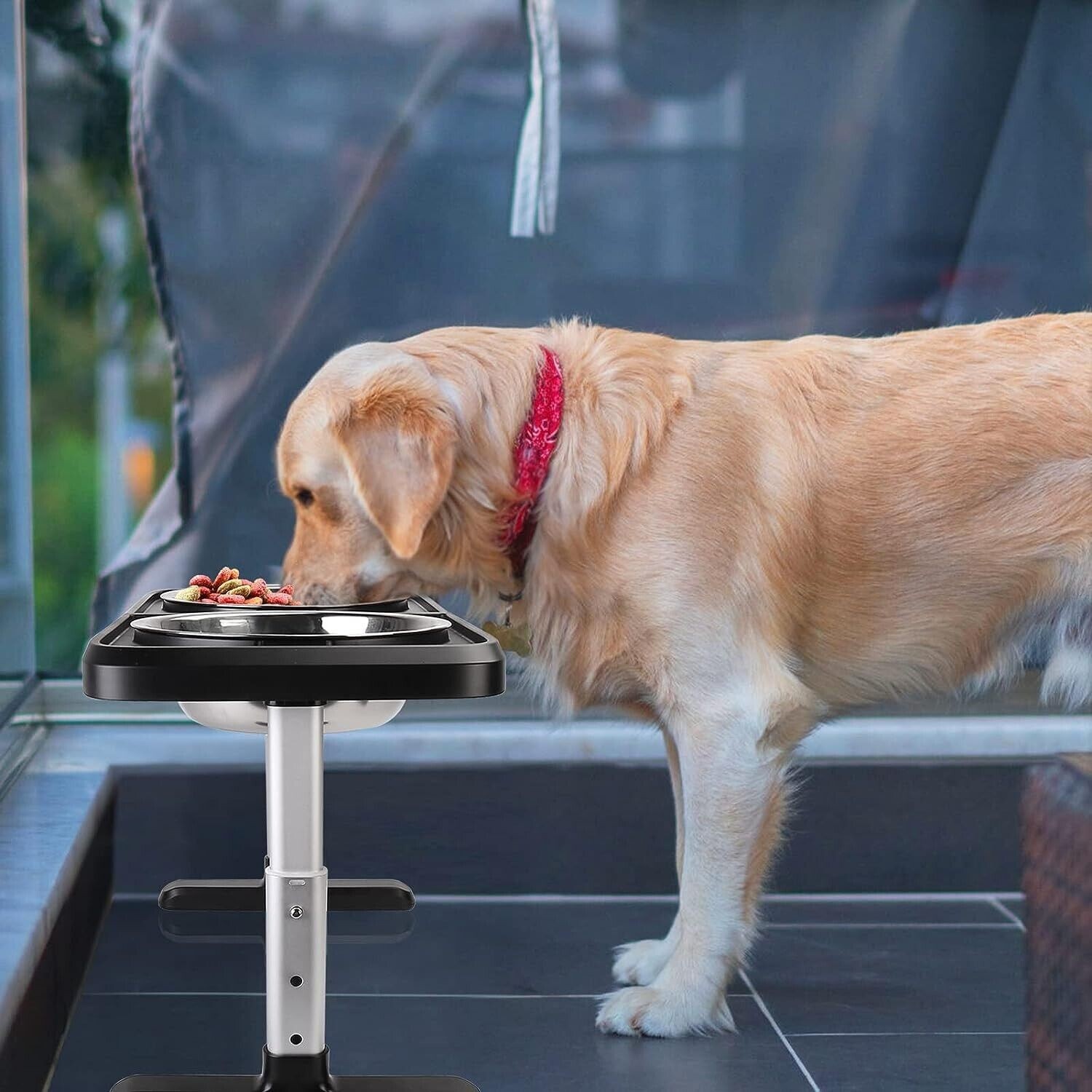 Dog Bowl Stand for Large Dogs - Height 14-Inch, Adjustable, Lockable Width