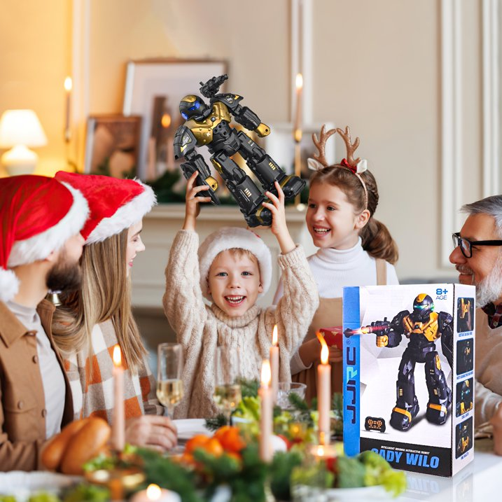 1. ?【Febfoxs Upgraded Toy Robot】Unisex Upgraded robot is made of high-quality matte metal, It has cool features include magic sound effects, simulated machine guns and shield, all of which make it interesting and attractive, suitable for toy robot model lovers of all ages.