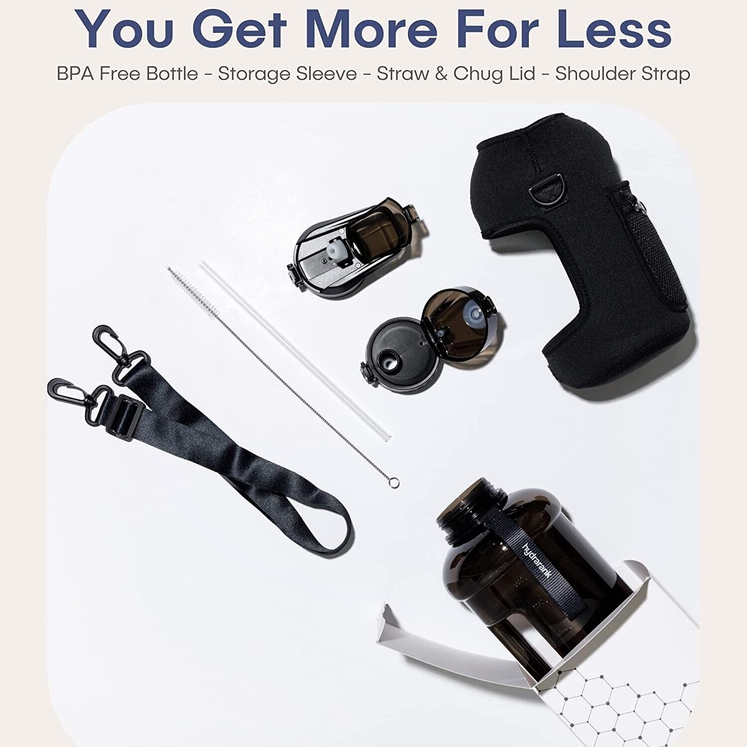 Half Gallon Water Bottle with Straw and Chug Lid-2.2L Gym Water Jug, Abyss Black