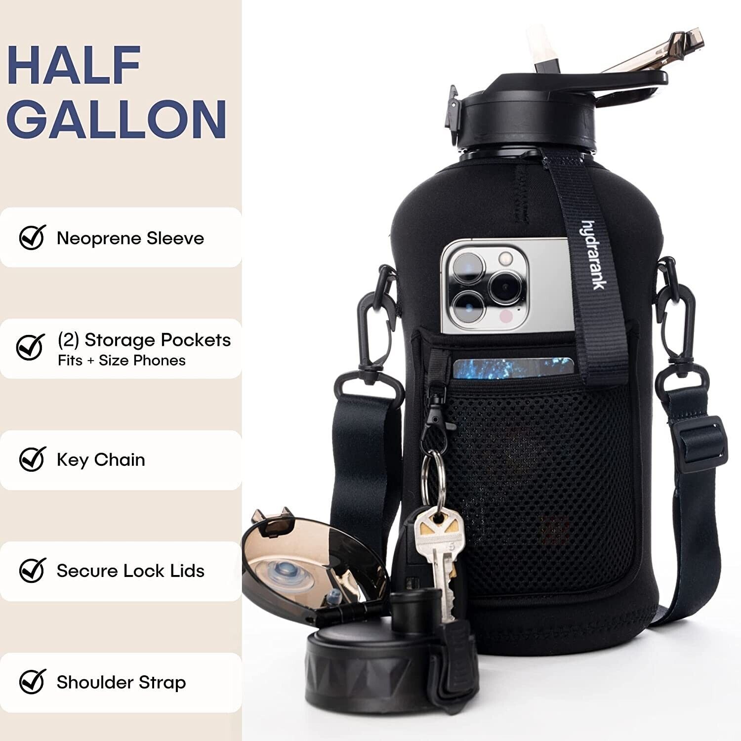 H2O Capsule 2.2L Half Gallon Water Bottle with Storage Sleeve and Removable. eb2