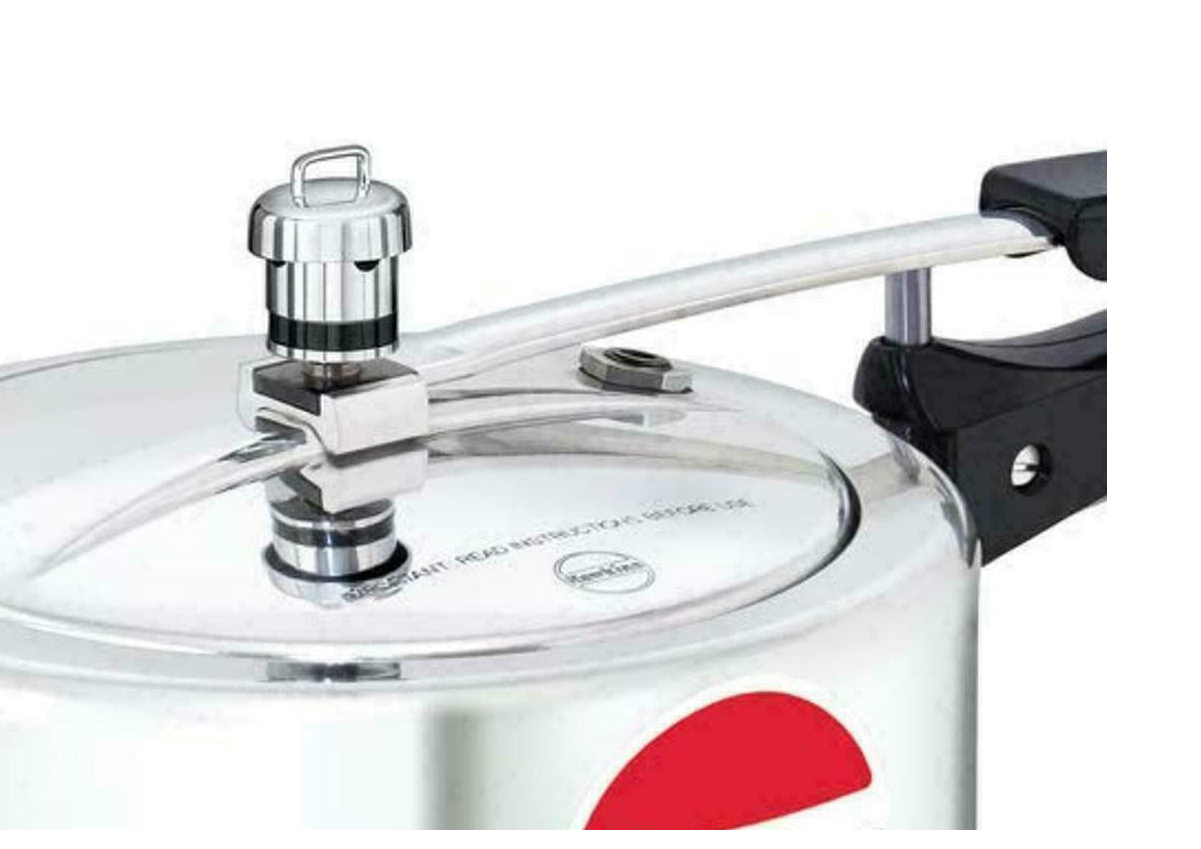 The Hawkins Hevibase pressure cooker made of commercially available pure aluminum is induction compatible with an external base plate made of Aisi 430 grade magnetic stainless steel, which is attached to the double-thick base. It can be used safely on all household gas, electric, halogen, ceramic and induction hobs. The double-thick, heavy base is ideal for lightly frying before pressure cooking. The base stays flat, never bulges. Suitable for gas, electric, ceramic and halogen hobs. A version of this model with a fully hard anodized, double-thickness base was available as the Hawkins Ecobase. This was suitable for household gas, electricity, halogen, ceramics, but not induction hobs. This product is no longer available in certain markets.