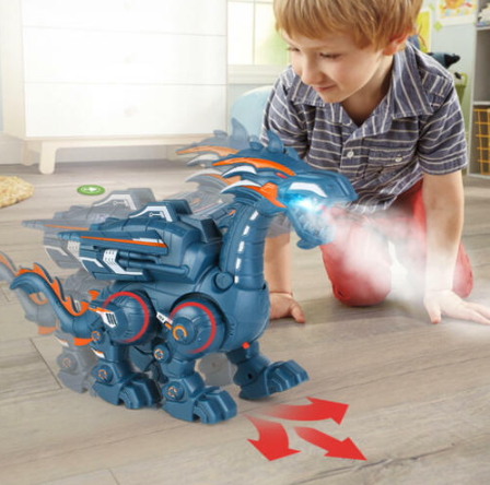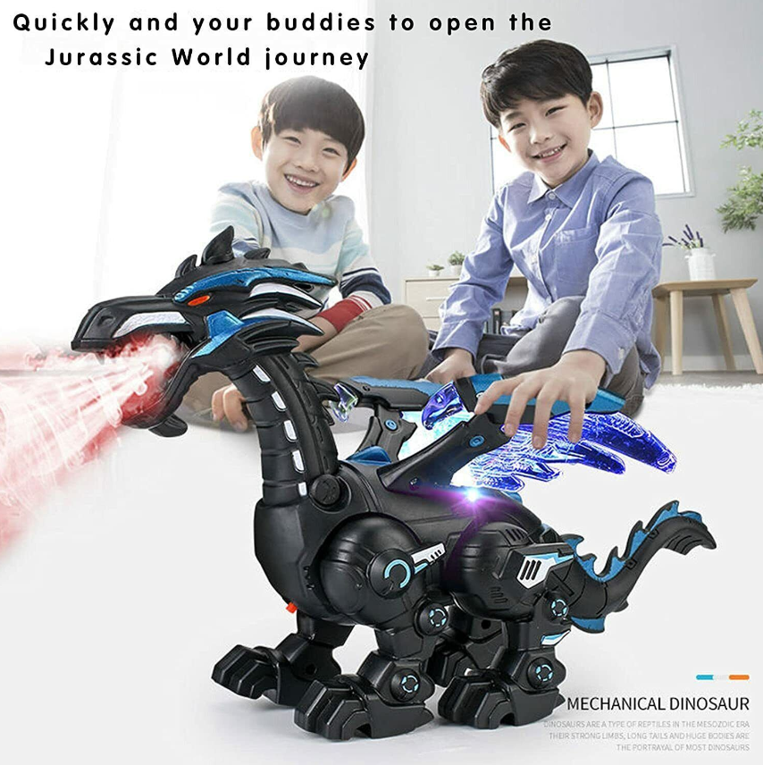 2. 【Interactive Dinosaur Toy】: Growls Walking dinosaur has Technology Machinery Dinosaur appearance. Dinosaur has stunning, dazzling lights that illuminates. It could move, flame spraying, realistic roaring Suitable for family entertainment, but also the children's loyal growth partner.