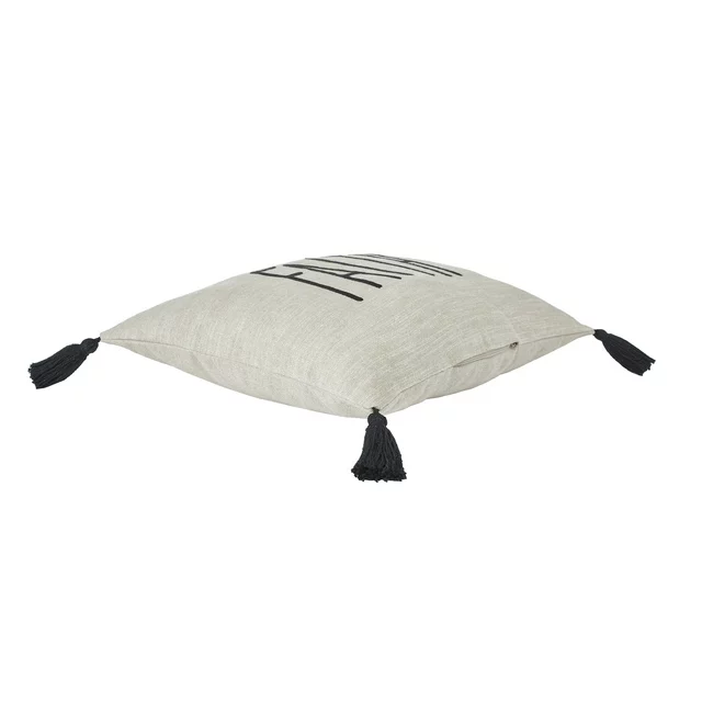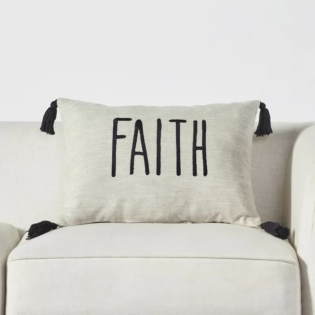 Add a little positivity to your bed, couch, or favorite chair with the Mainstays 14" x 20" Faith Tan/Black Tassel Cotton Decorative Pillow. An effortlessly stylish accent for any room, this lumbar decorative throw pillow has the word “Faith” in black letters and corner tassels for added flair. You can easily keep this cotton decorative pillow fresh and looking new by periodically spot cleaning the fabric gently with a damp cloth as needed. Each oblong decorative pillow measures 14 inches x 20 inches and is sold separately.