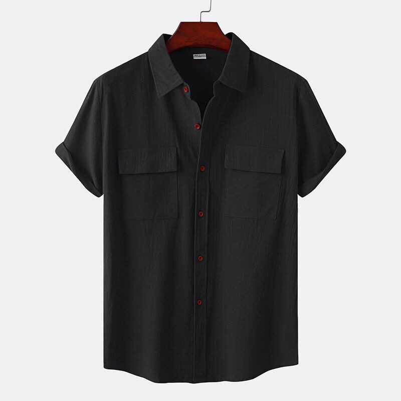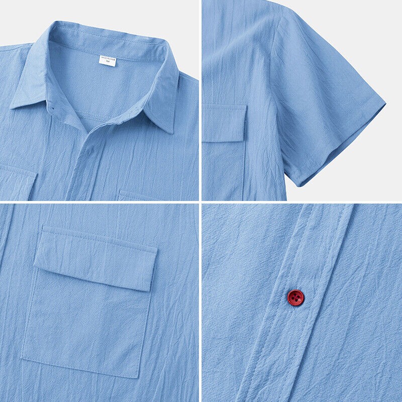 Men's Casual Button Down Shirts Short Sleeve Beach Linen Cotton Summer Shirt ❀