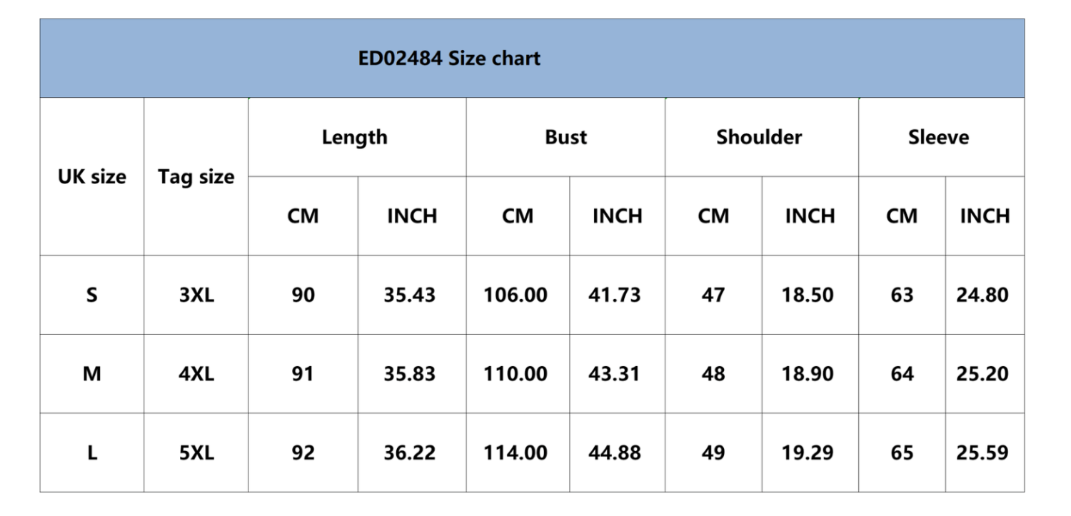 3.Size doesn’t fit all.Please carefully check size chart and select the size based on your real size.