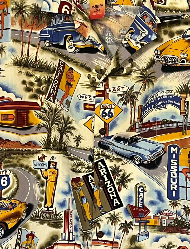New PACIFIC LEGEND Mens' 3XL S/S Cotton Hawaiian Shirt - Route 66 Print w/Tag