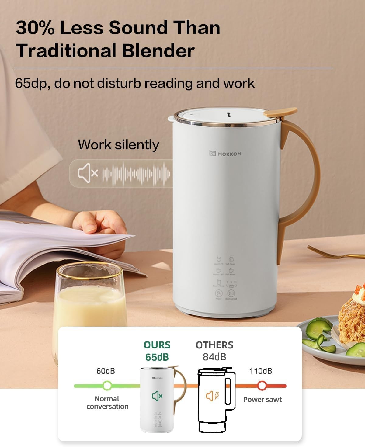 • ?【Dairy-Free Nut Milk Maker】OK MOKKOM nut milk maker can make smooth, rich, and creamy milk by crushing the nuts, grains, and seeds. Not only it can make dairy-free almond milk, soy milk, oat milk, and cashew milk, but also it can make smoothies, cold plant-based beverages, and hot chocolate. You can make different kinds of homemade plant-based milk or beverages to suit your taste.