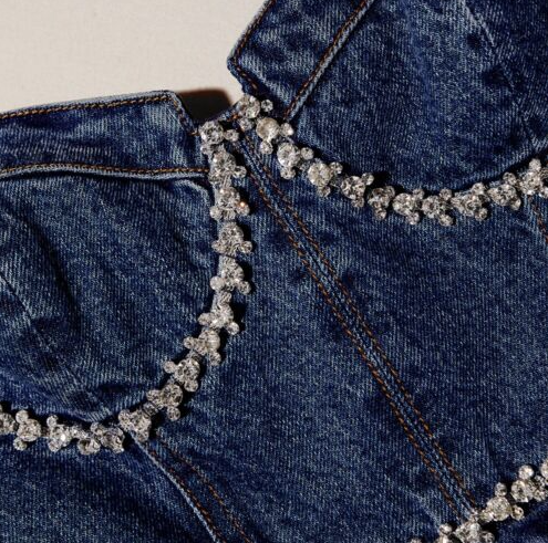 Self-Portrait Cotton Denim Slip Dress Diamante Backless Mini Dress for Women New