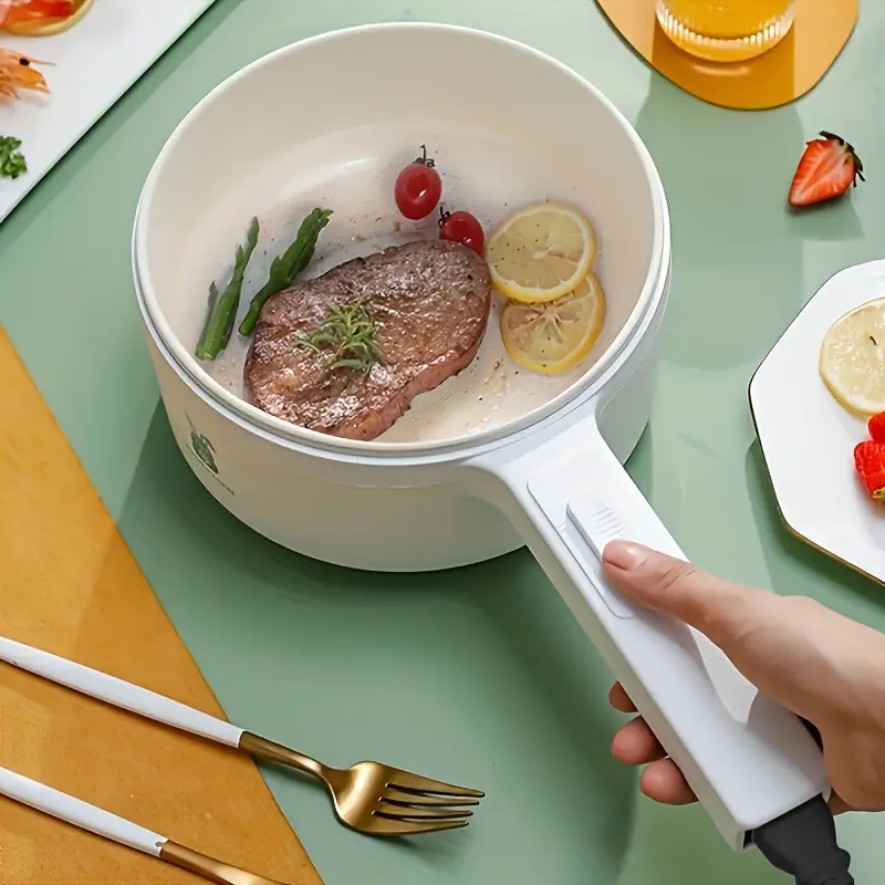 US Plug 2L Electric Cooker, Long Handle Cooker With Steamer, Multi-Function Steamer, Electric Hot Pot, Frying Pan, Multi-Function Frying Pan, Student Dormitory Cooking Pan, Non Stick Pan, Frying Pan,