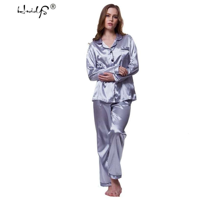 Women's Silk Satin Pajamas Set Long Sleeve Button-Down Sleepwear Nightwear Plus
